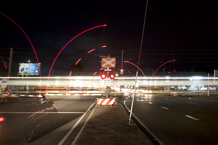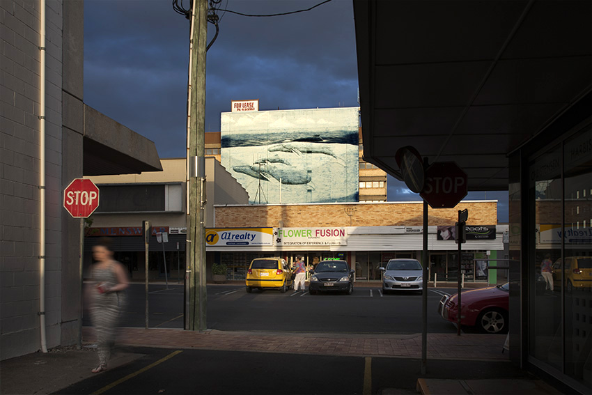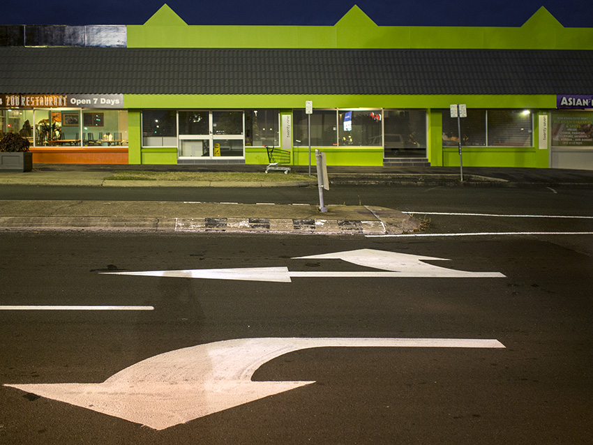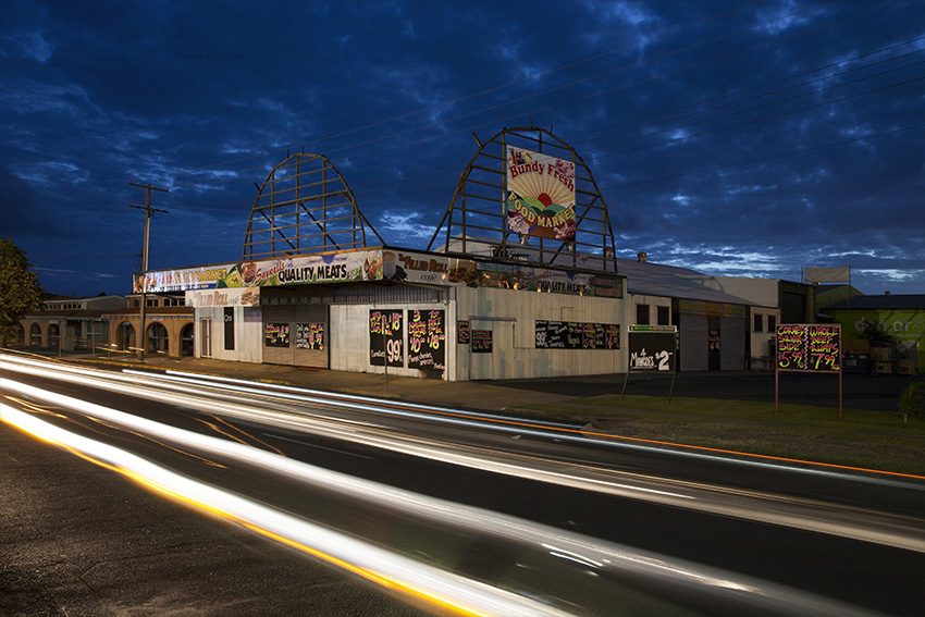 Spowart and Cooper initially visited Bundaberg early January to commence stage one of their Artist in Residence at the Bundaberg Regional Gallery. An important aspect of their Nocturne aesthetic is the affect of colour in different light conditions: ambient daylight, artificial lighting, car head and tail light trails. These images create a sense of drama, something that you’d generally see in a setting for a movie scene. It’s a place where stories could be told or evoked.